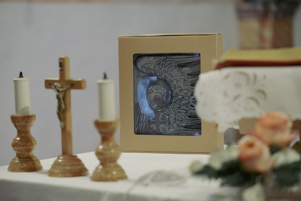 Gasilci PGD Nadgorica smo v zahvalo, ker smo nekaj finančnih sredstev darovali za obnovo naše male vaške cerkvice, dobili v dar pečnico. Le-te krasijo krstilnico v župnijski cerkvi, kjer so stene skorajda od tal pa do vrha pokrite z glaziranimi pečnicami, z reliefom orla, s križem v medaljonu, v kobaltno modri barvi, dizajn arhitekta Jožeta Plečnika. Modra barva, ki daje občutek kot da bi stali v vodi – simbolu krsta, očiščenja in novega začetka.